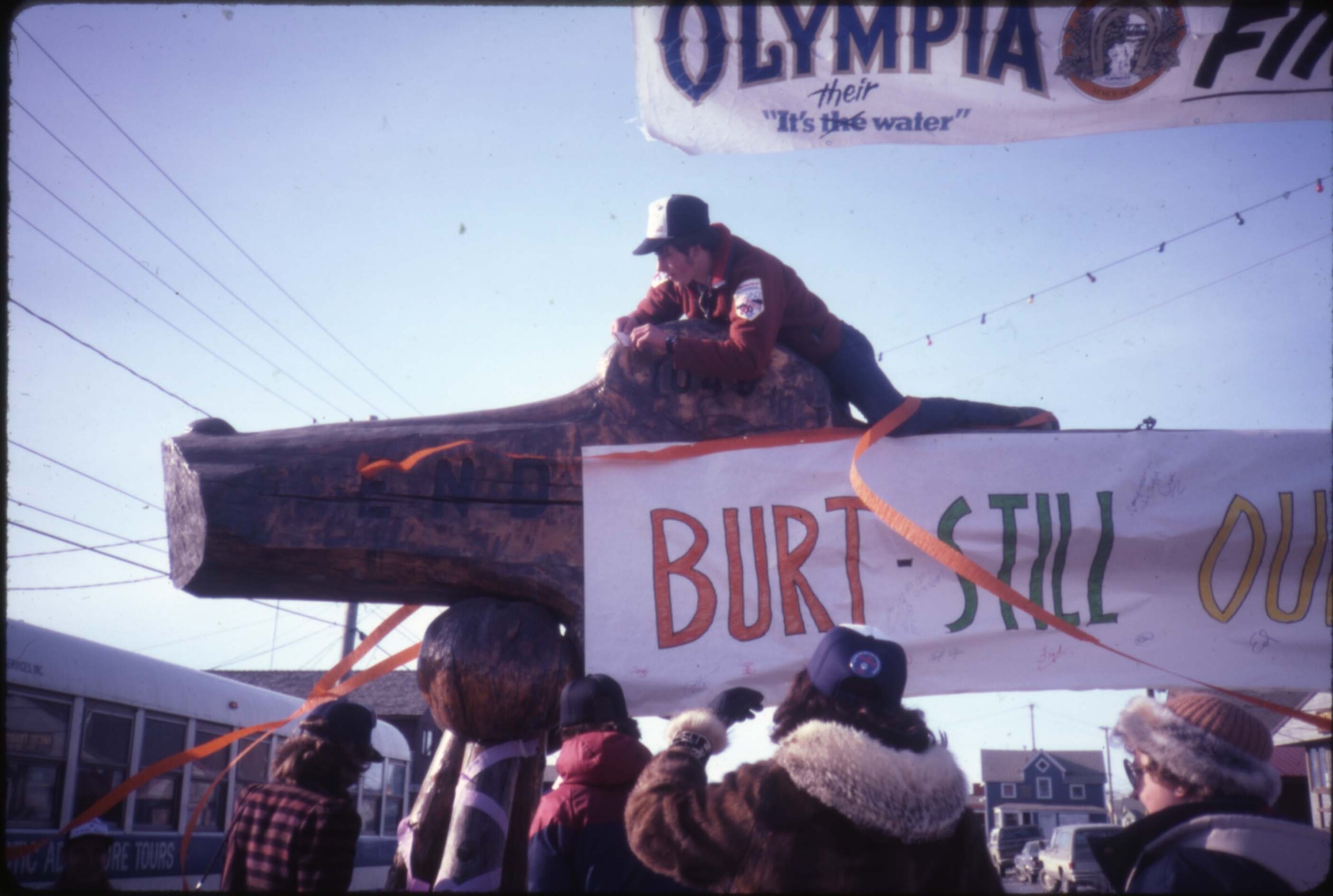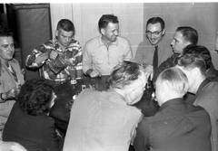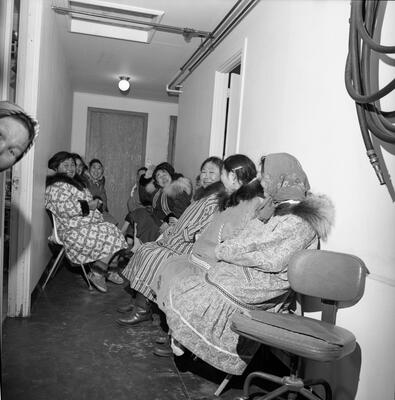 Traditional Iñupiat games in the Alaska Nat’l Guard Armory Building. • Selawik, Alaska • December 1975 • B&W Photo #8/15 • ( © George R. Harbeson Jr. --at left in photo)