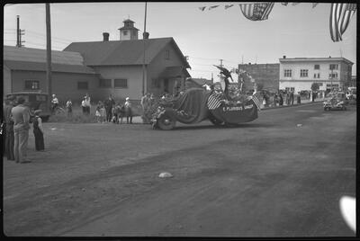 8-1940 (Fourth of July Parade, 1940) [Baby Shop float with stork pulling sled]