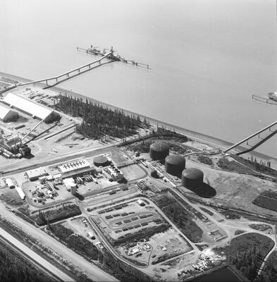 PF5 A fish trap in Southeastern Alaska; Frank Morgan photo [aerial view of fish trap near coastline; copy neg]