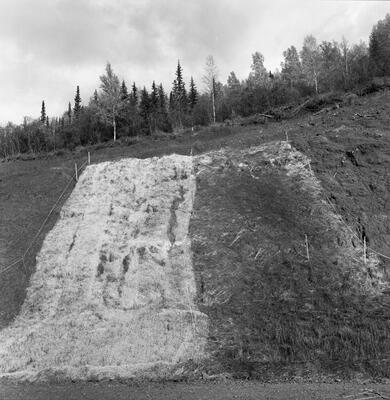 W18 Ski area, Fort Richardson, Alaska; photo by Vern Brickley [copy neg; man wearing t-shirt, pants, hat, gloves poses with skis and poles; Chugach Mountains]