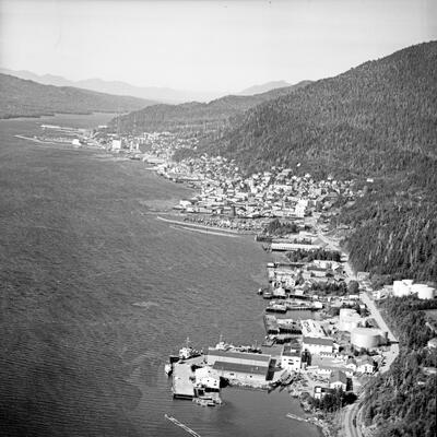 49-3 Panorama of Ketchikan, 1/2 meter reading - yellow filter [view of waterfront; 1940]