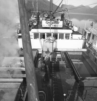 While a state ferry may travel in severe wind, oil tankers are restricted. Valdez. Photographer's number: 17877. Feb 13, 1979.