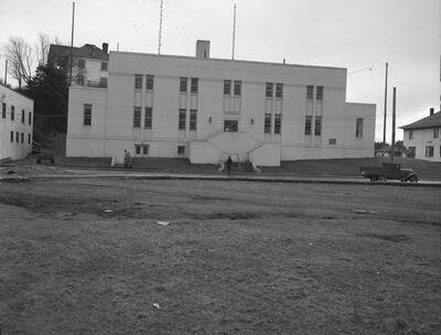 (B73 Anchorage, Westward Hotel) [gravel street, automobiles]