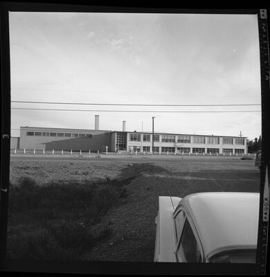 (Building Federal Building, P.O. Annex, Oct. 23, 1941) [view of construction site of new federal building on Fourth Avenue in Anchorage, exterior of nearly completed postal annex with scaffolding and parked automobile]