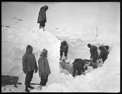 [men at site of airplane crash, Mt. McKinley rescue squad operation]