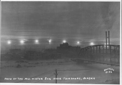 O32 Path of the mid-winter sun over Fairbanks, Alaska (1949 postcard) [copy neg; same as .1165]