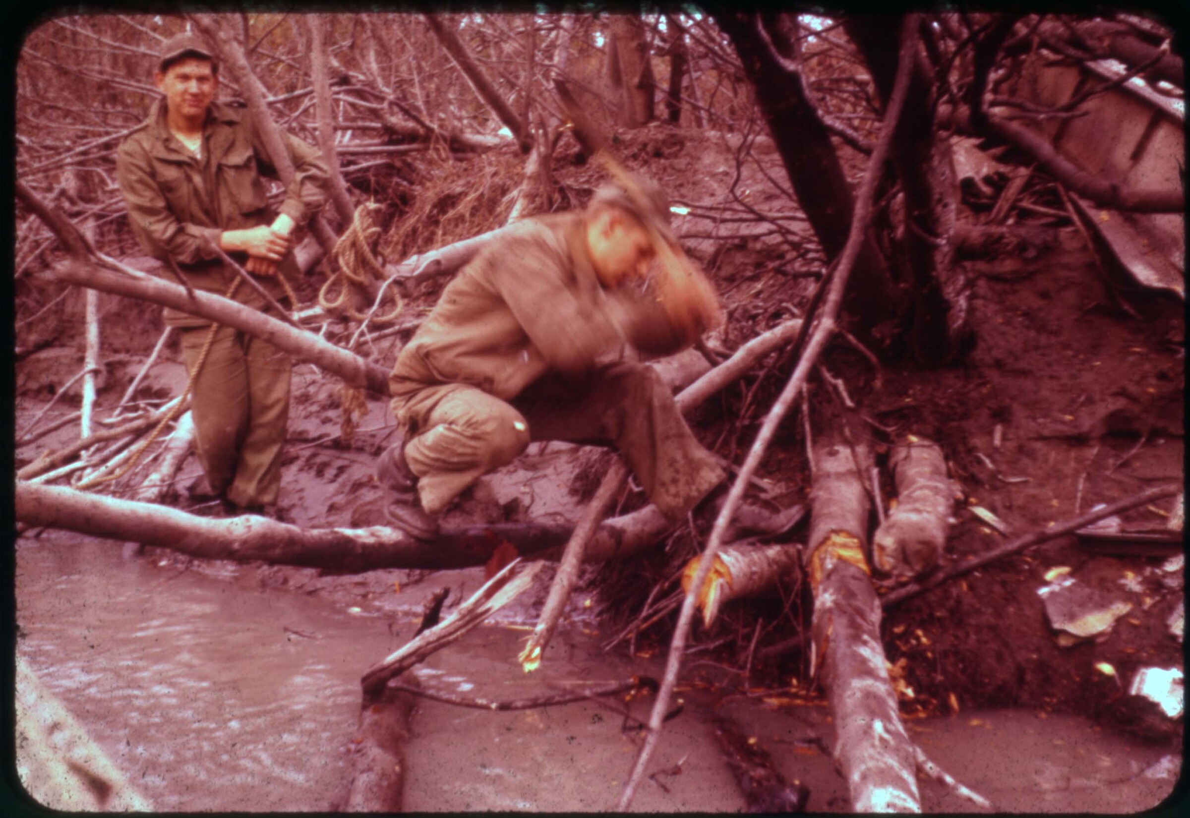 (Jeanne, Simpson, Goldstein)[three women engaged in conversation on the bank of a river with their backs turned to the camera]