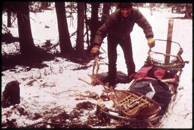 W12 Winter trail in Alasks "1946 postcard (trail & cabin) [copy neg; same as .2102]
