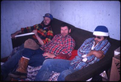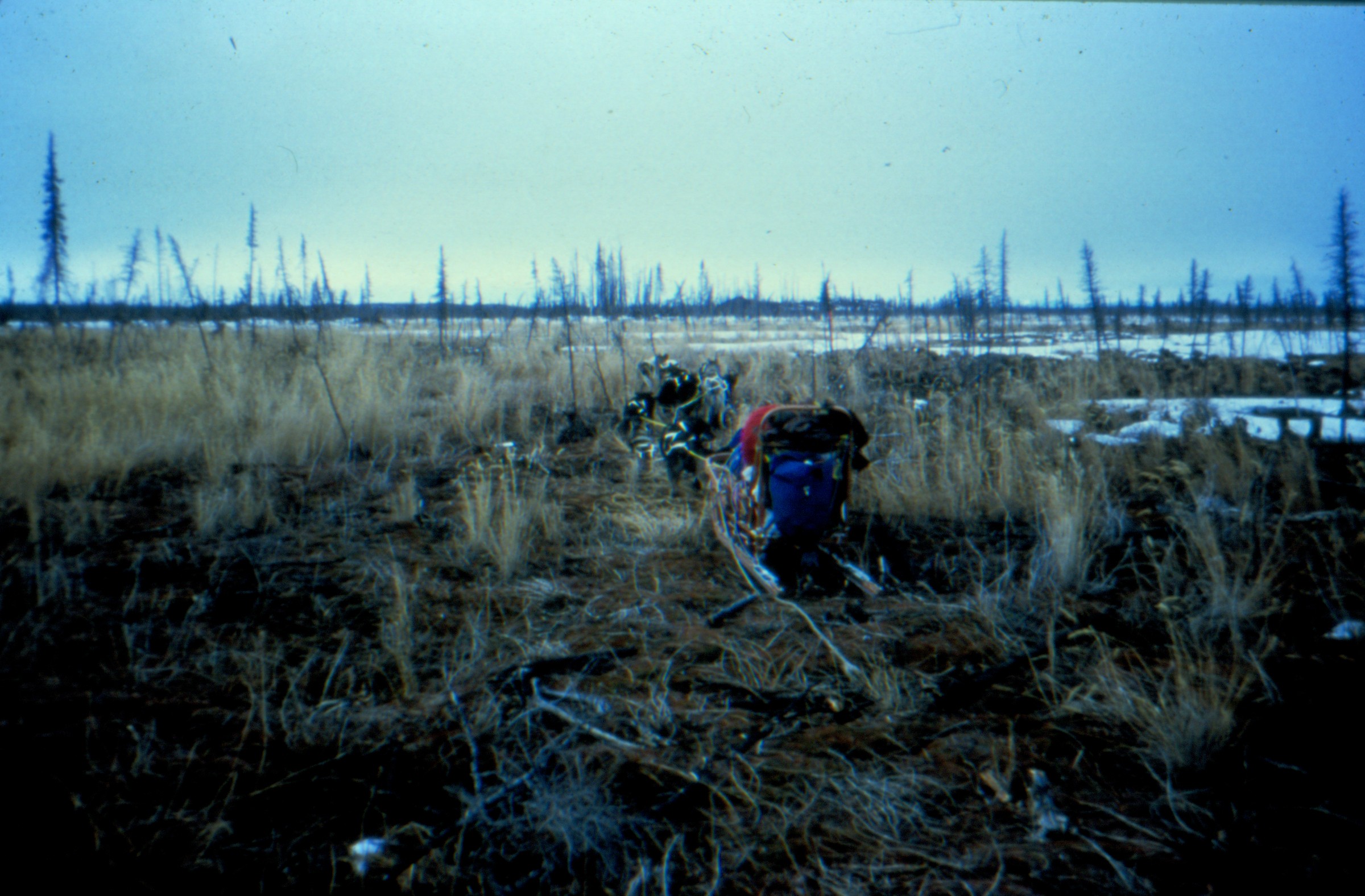 Camped in the dead forest under the crater of Katmai Volcano. c. Roy Gilley, Guide, Kodiak, Alaska [deteriorated nitrate negative]