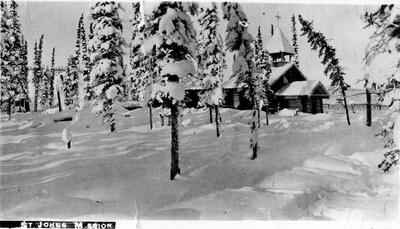 Old Ft. Gibbon, close to Tanana [photographic postcard. Fort Gibbon. B&W 3.5 x 5.5]