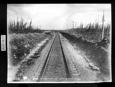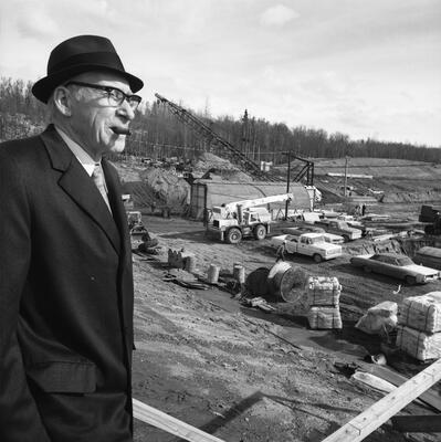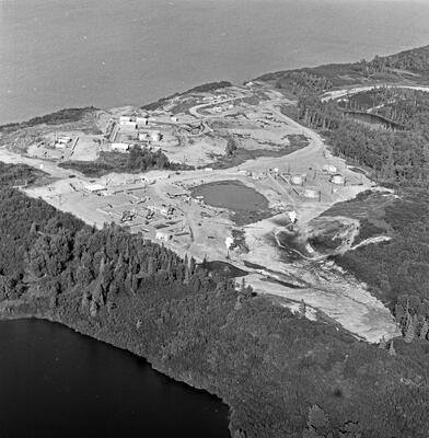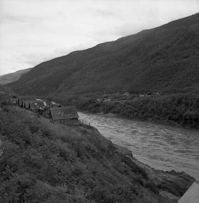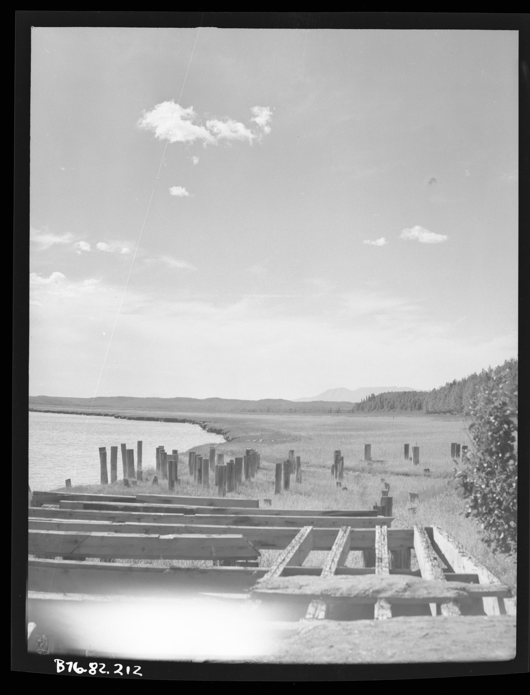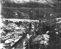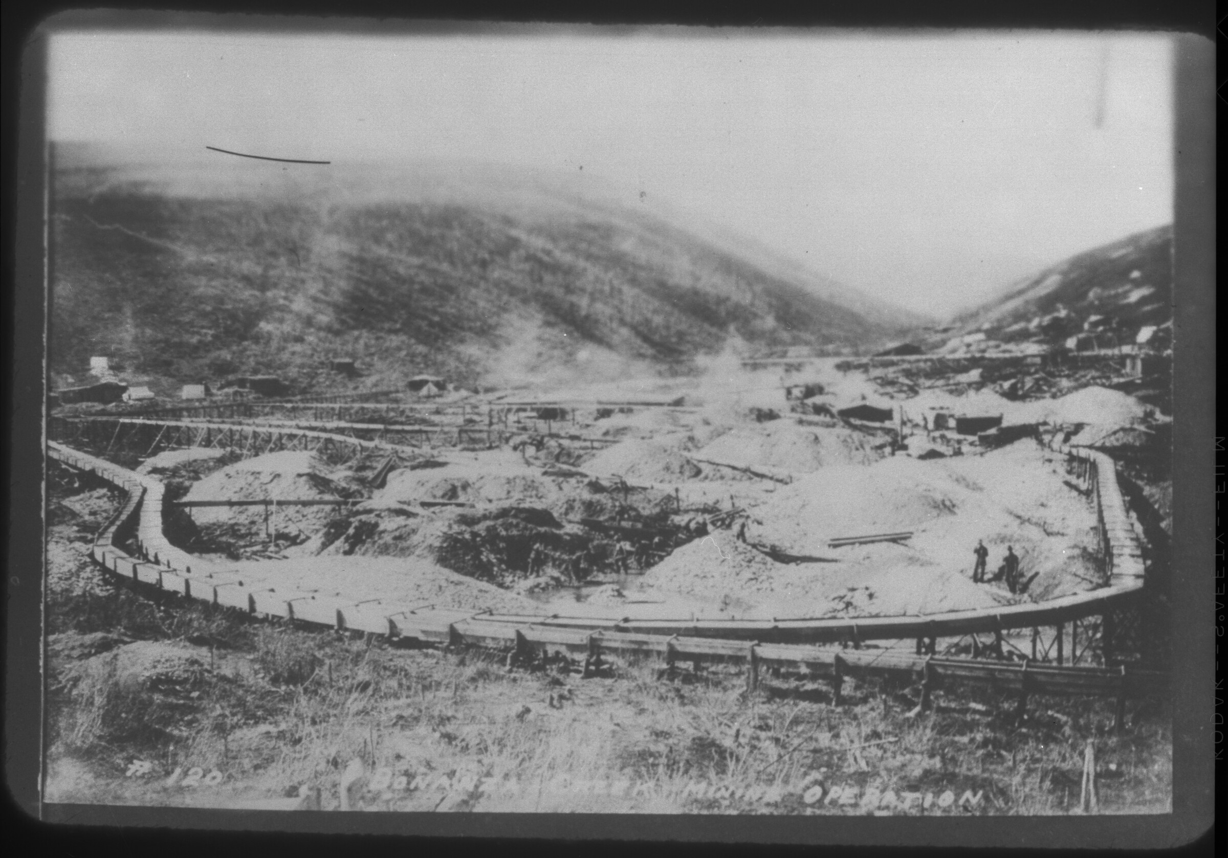 GZ-95 (Scenes in Golden Zone) [heavy equipment constructing water intake for hydroelectric plant across valley of West Fork of Chulitna River. Probably 1938-1939]
