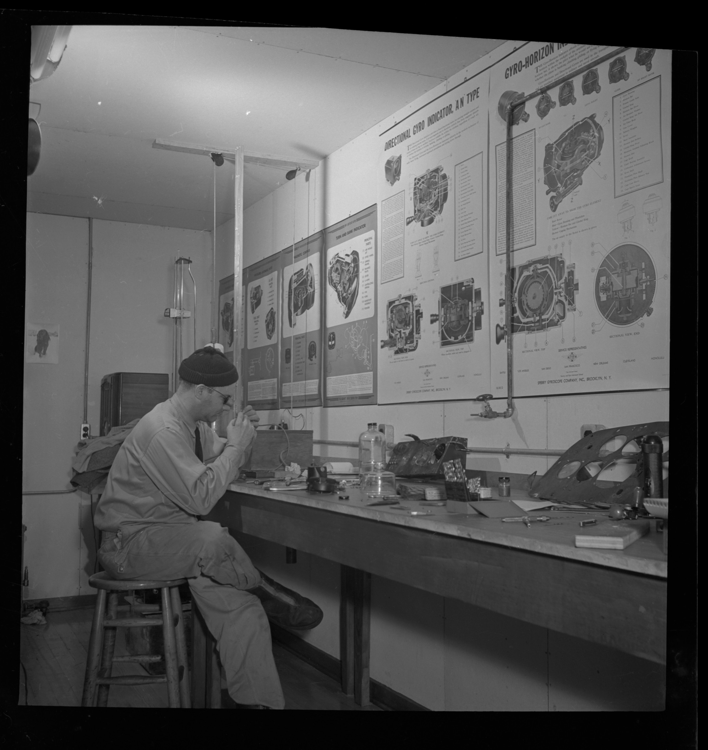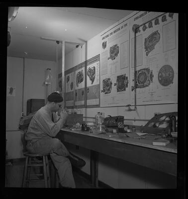 Each year Civil Defense survival supplies are inventoried and radiation detection instruments are exchanged to make sure they are in proper working order. [Land Polaroid]