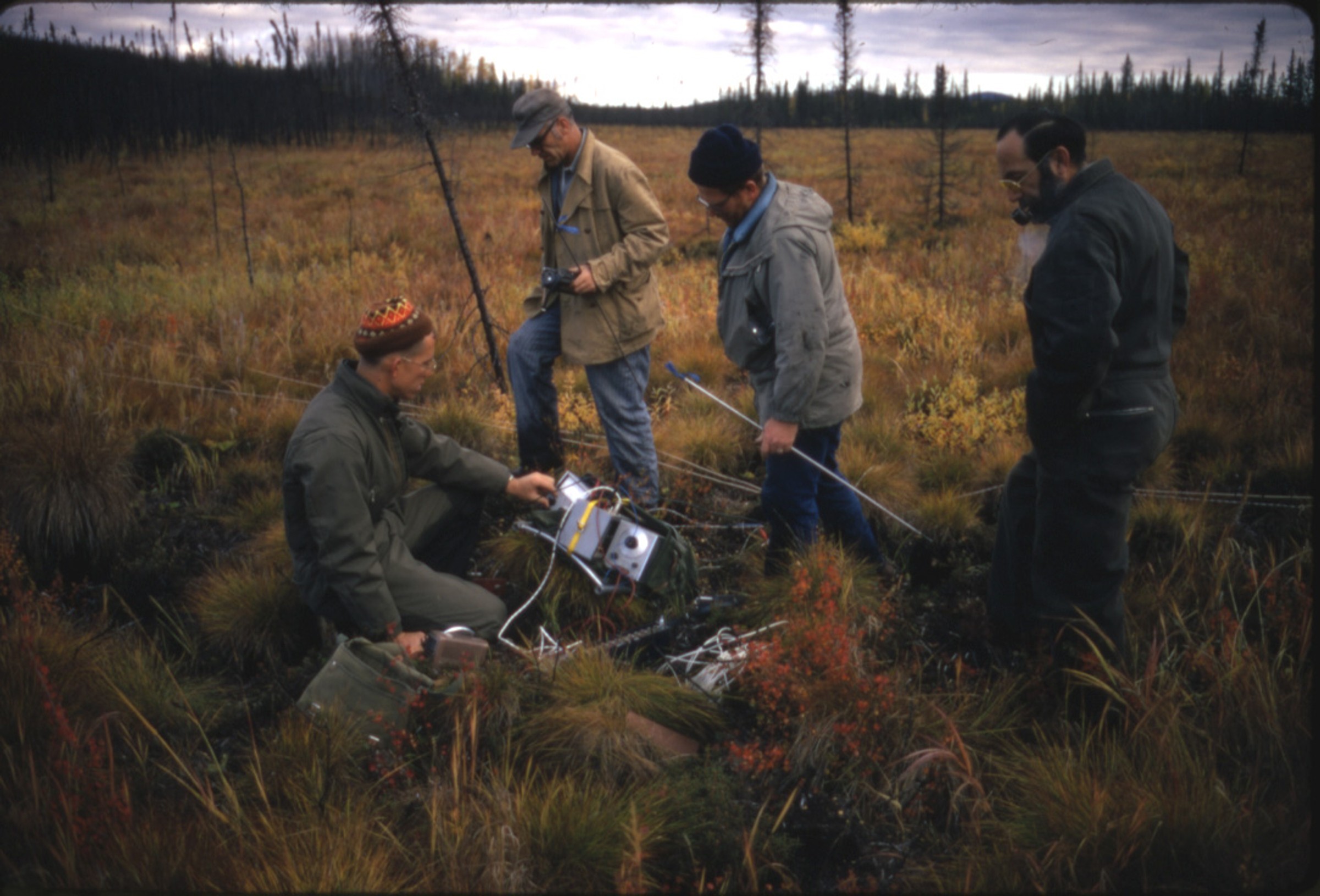 [Blurry image of Indigenous Alaskan Elders in parkas standing on boardwalk outside building]
