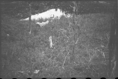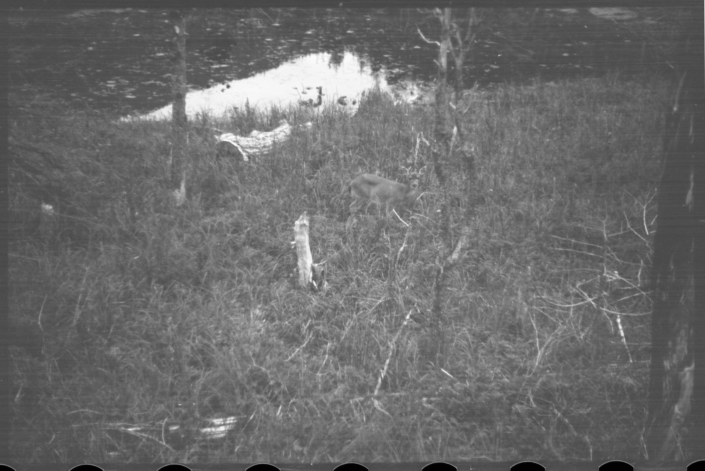 22-5 Pictures of deer at Ward Cove; 8:30 pm - Aug. 5th [1939; black-tailed deer; water in background]