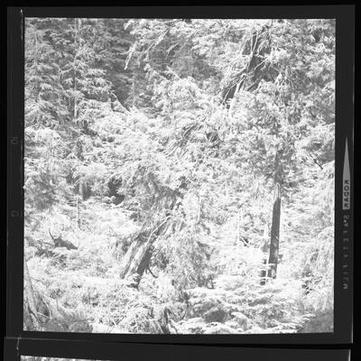[scenic view overlooking trees, mountains in distance, neg. is deteriorating]