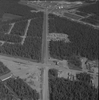 (Sportscar Race, Fur Rendezvous, Anchorage, 1963) [bird's eye view of course passing Alaska Railroad depot on Ship Creek]