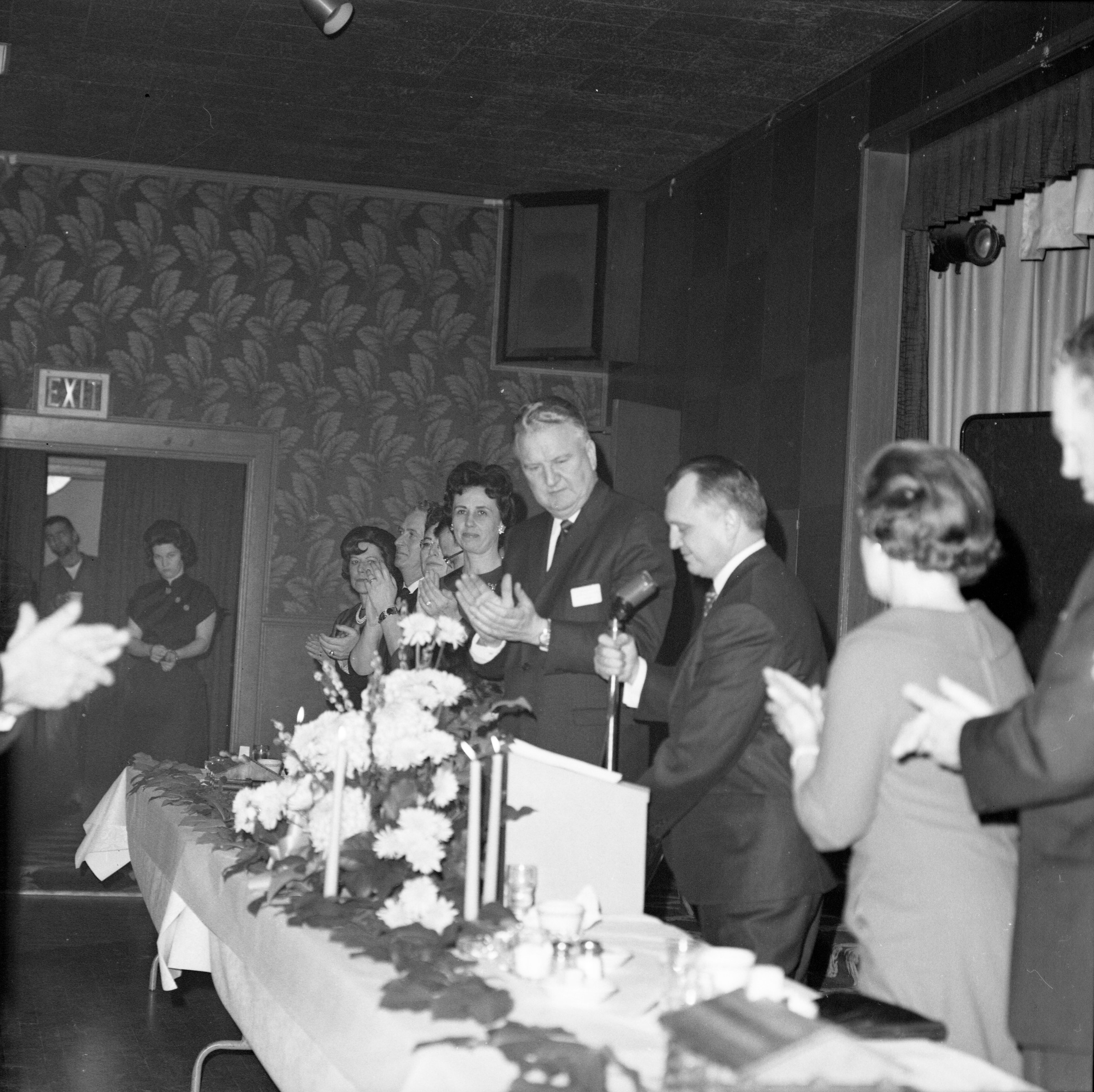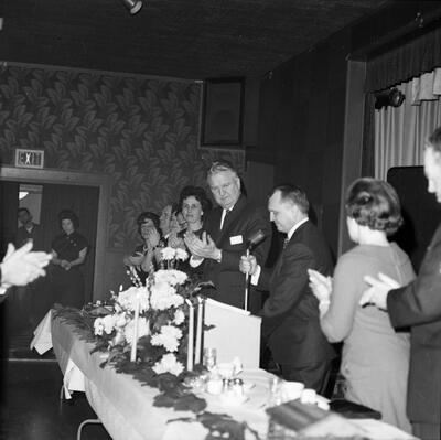 #19 (Parade) [night, woman, probably Rondy Queen, carrying bouquet of flowers outdoors in front of spectators, 1950 Fur Rendezvous?]