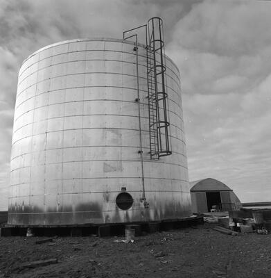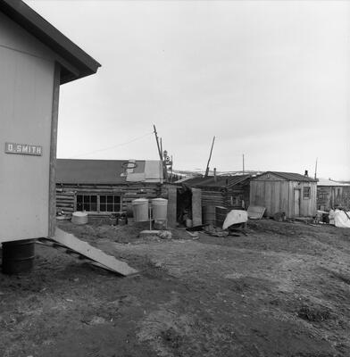 91-3 Nome [April 1943; Pan X; abandoned mining equipment in foreground; structures, automobile, storage tanks in distance; snow]