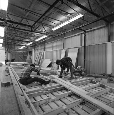 (Building Federal Building, Inside Construction, May 25, 1940) [construction of new federal building on Fourth Avenue in Anchorage, post office boxes in lobby area]