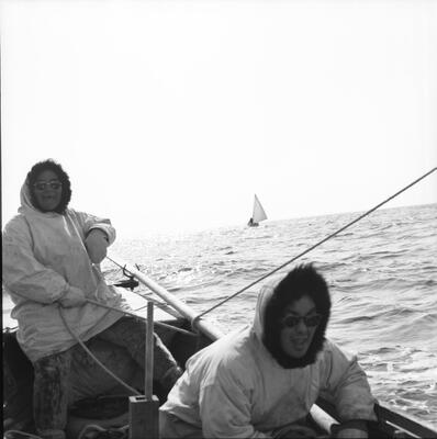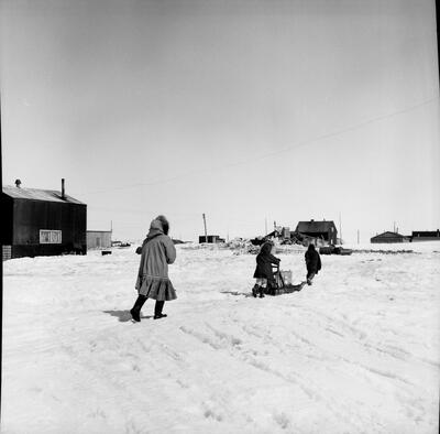 (Nunivak Island Trip native people close-up children)[two men conversing]