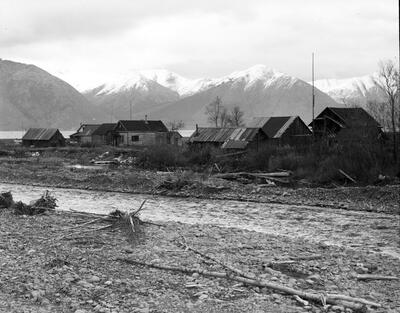 Destroyed houses in the Turnagain area amidist huge cracks and uplifted soil.