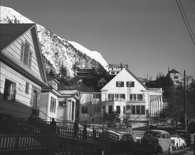 B-54. Along the Inside Passage. Hewitt's Photo Shop, Anchorage [village seen through trees]