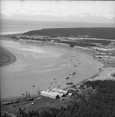 Earthquake damage to Turnagain Arm area, May 12, 1964 [aerial of shoreline]