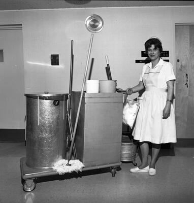 14-4 Carol Marsh [Carol Gale Marsh - June 18th [1939] 5 days old; woman wearing nurse uniform holding infant next to window; Ketchikan]