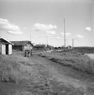 Keywords: Indigenous, BIPOC, Alaska, Alaskan, Child, Toddler, Waving, Wave, Buildings, Structures, Church, Community, Village