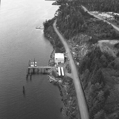 (Ketchikan Pulp Company Thorne Bay)(7381)(1967)(Air)(Ketchikan Pulp Mill)(1-11x14 horiz)1-Interneg)(note approx crop lines){aerial view of pulp mill}