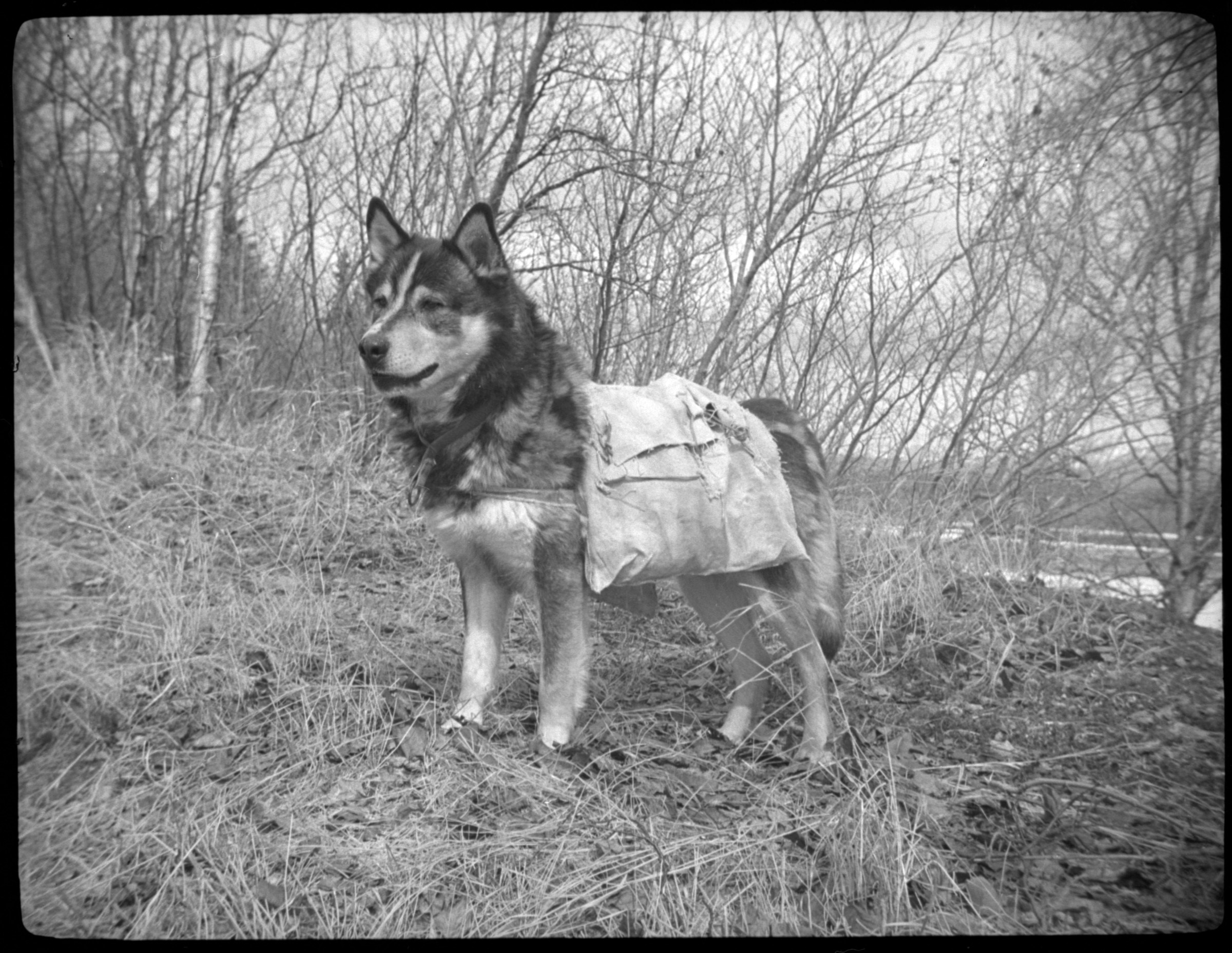 [portrait of dog wearing pack]