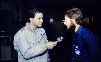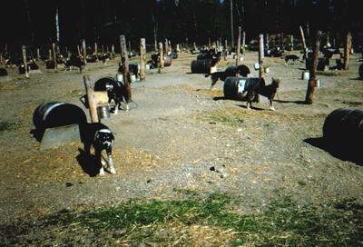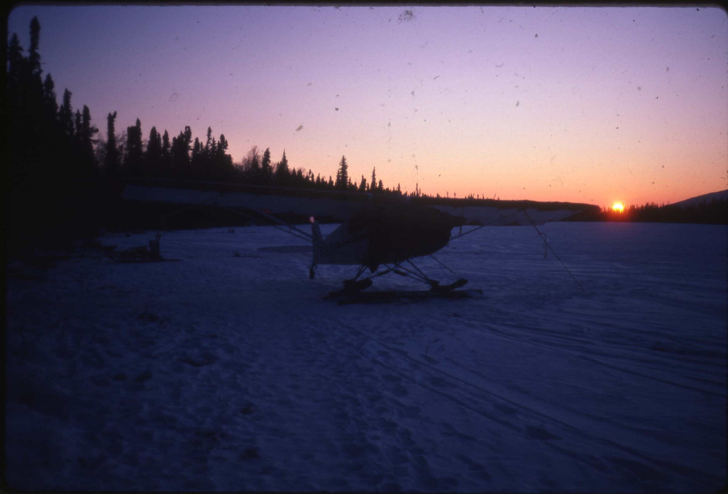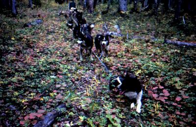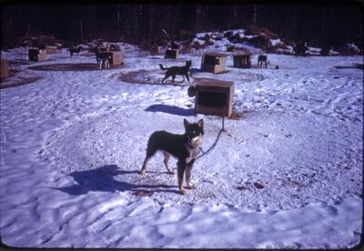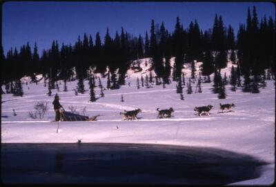 Finish Iditarod 1975 Anchorage to Nome Wien Air Alaska [burled arch, Front Street, Nome]