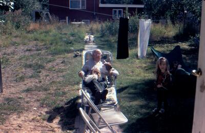 JUN 73. Note on back: “The first summer in Alaska, Marys Apt. Tr. #3, Fran, Ed & Chairita”